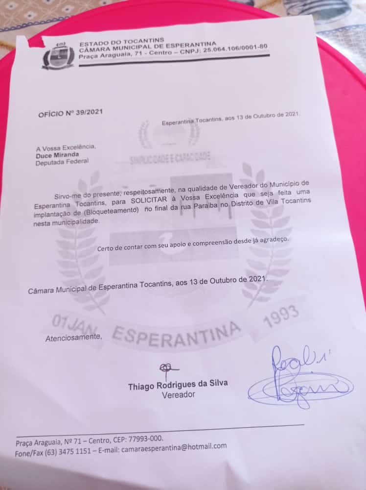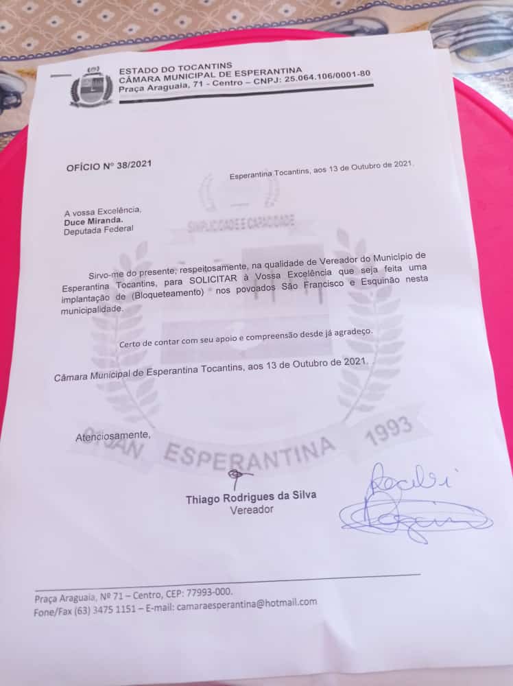 Apresentado então dois requerimentos pelo vereador Thiago Rodrigues a deputada fez o compromisso de Já Está apresentando na Câmara em Brasília para que seja solucionado o mais breve possível o bloqueamento do povoado São Francisco., E do assentamento Esquinão