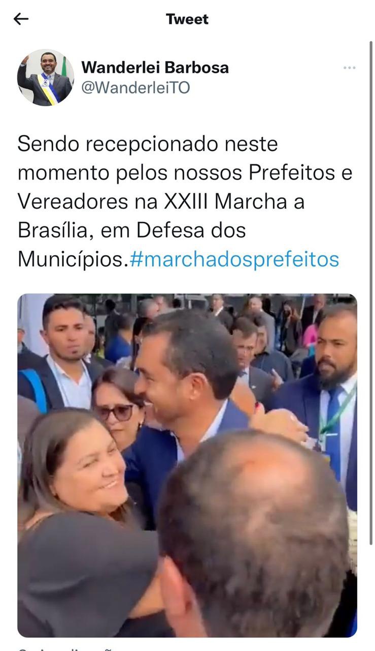 Hoje, terça-feira, o Governador do Estado do Tocantins, *Wanderlei Barbosa,* junto com Prefeitos e Vereadores tocantinenses, marcam presença na XXIII Marcha a Brasília em Defesa dos Municípios.